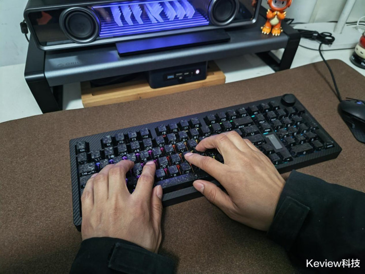 体验了这款键盘约有一周,其手感还是相当不错。按键的反馈力度适中,既不会过于绵软也不会过于生硬,长时间使用也不会感到手部疲劳。98配列设计的布局合理,各个按键的位置设计符合人体工程学原理,在操作过程中更加舒适。